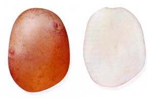 Световой росток | световые ростки расположены одиночно по всему клбню; основание округлое или овальное, интенсивно-красно-фиолетовым, слабоопушенное; вершина полуразвернутая, длинная, красно-фиолетовая, опушенная |